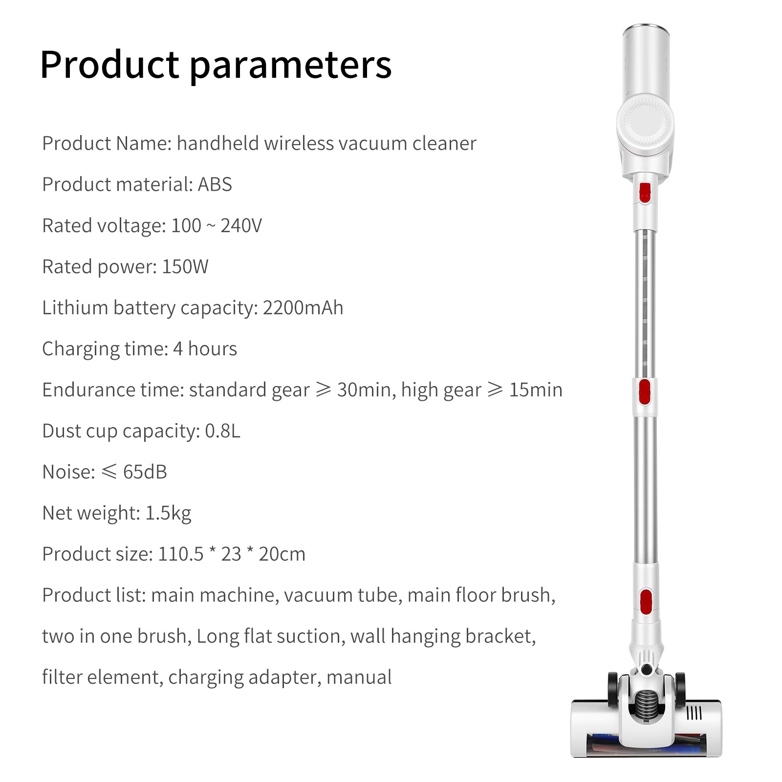 The main motor of vacuum cleaner only weighs 1.5kg, extremely suitable for one-hand cleaning.