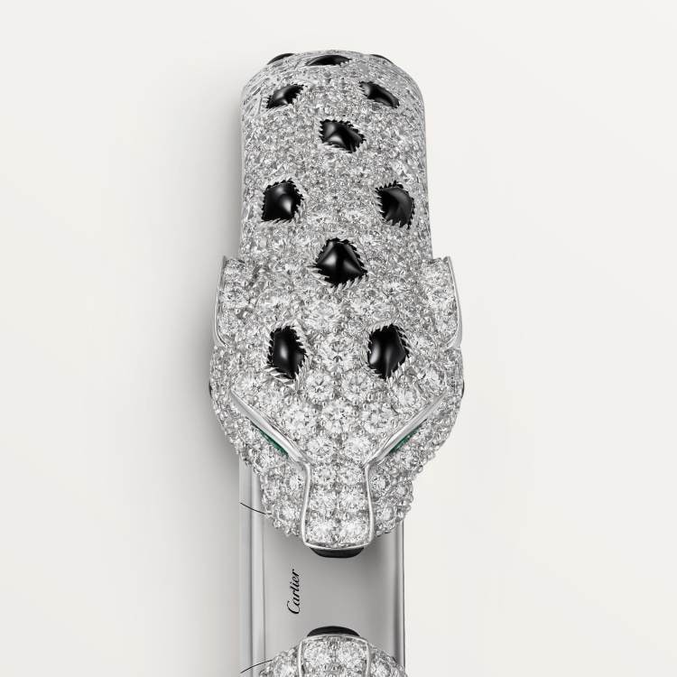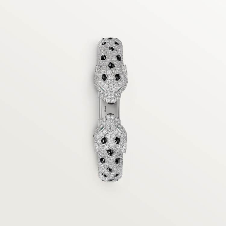 PANTHERE DE CARTIER Cartier panther bracelet, 750‰ white gold, onyx, set with 4 emeralds and 485 round brilliant-cut diamonds, total weight 6.25 carats (applicable size: 17).